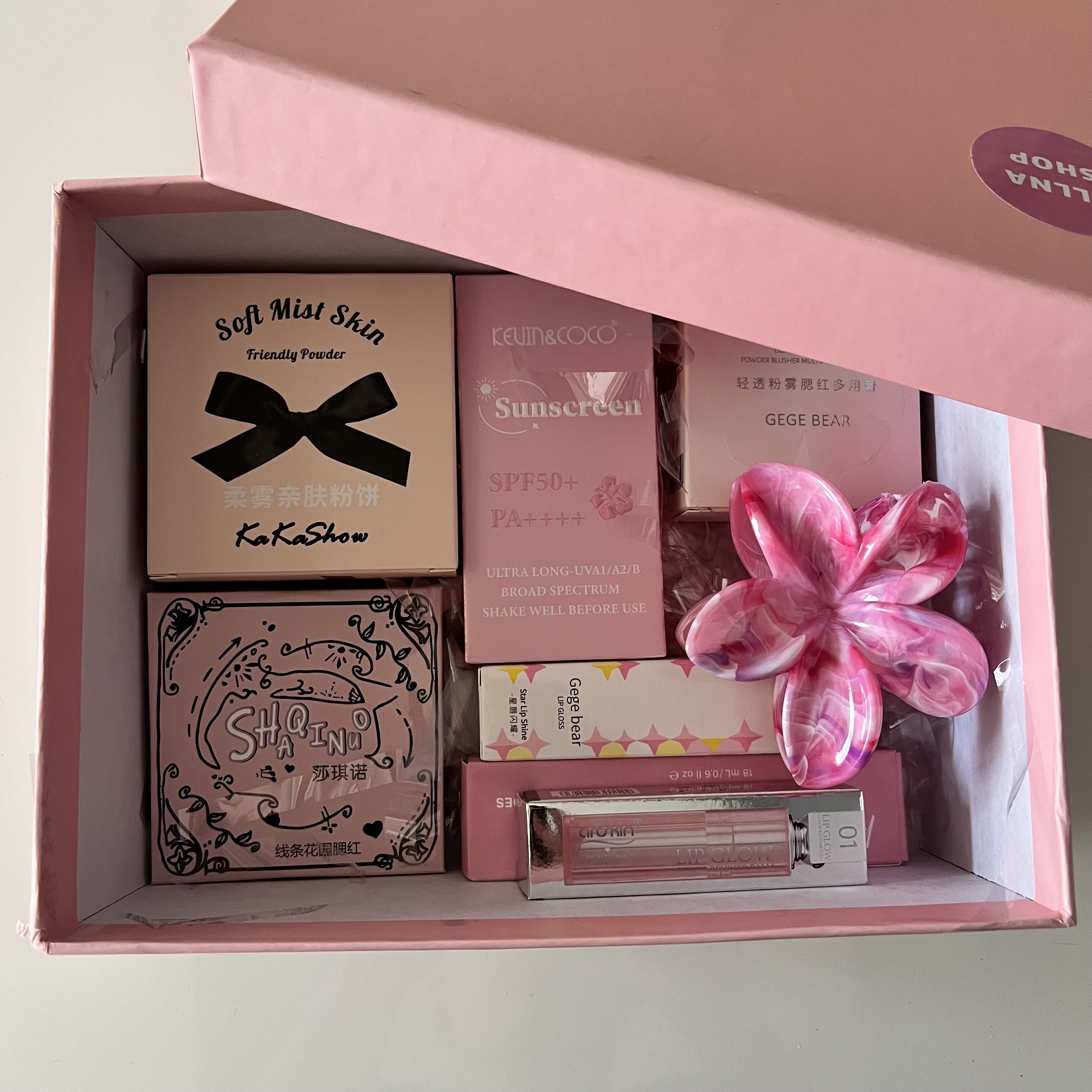 همراه با باکس شامل:ضدافتاب کوین کوکو،بالم لب دیور،لیپگلاس رود،لیپگلاس کیکو،پنکک پاپیونی،رژگونه پاپیونی،پلت رژگونه و سایه،پلومریا