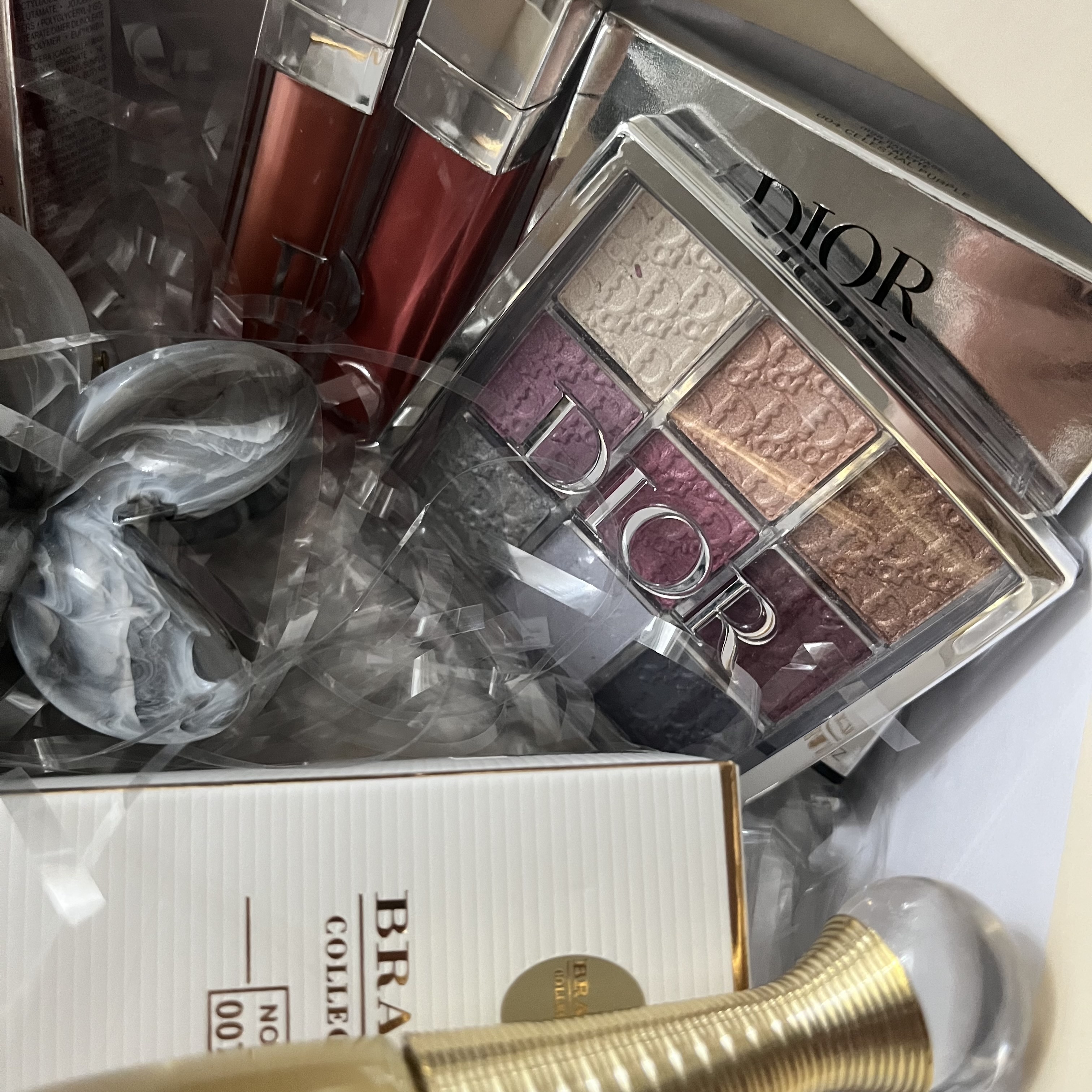 پک هدیه دیور شامل : پلت سایه ،دوعدد لیپگلاس ، بالم لب ، ادکلن طرح دیور ، پلومریا